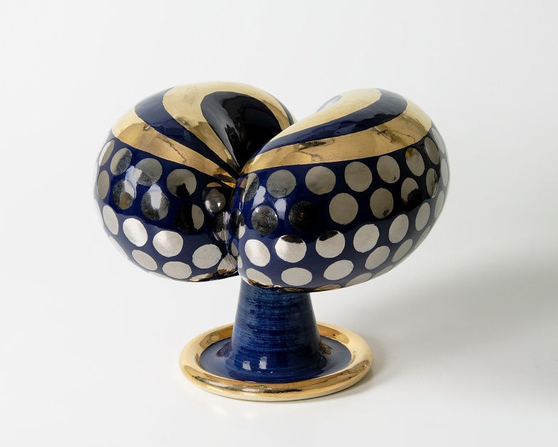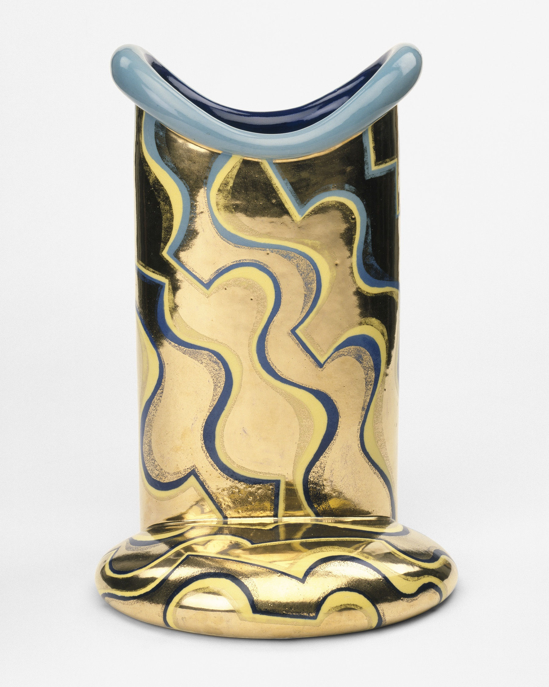 Yanagihara Mutsuo, Laughing Mouth Vessel, 1985, stoneware decorated with gold over blue and yellow glazes, 48.8 × 32.7 × 28 cm. © Victoria and Albert Museum, London, United Kingdom. Image courtesy of the musuem.